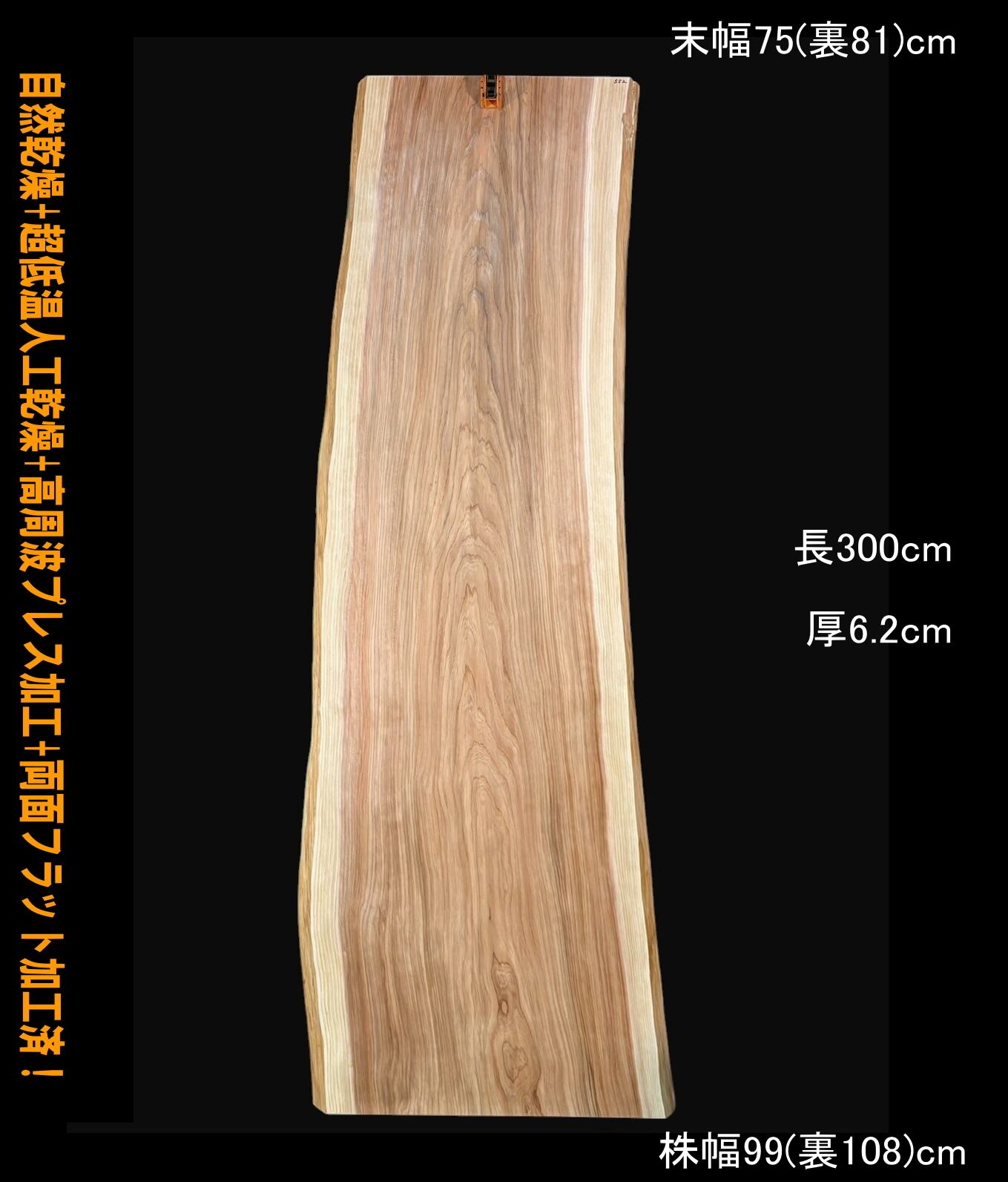 寸法:長300cm× 末幅75cm(裏81cm) ~中間幅86cm(裏93cm) ~ 株幅99cm(裏108cm)× 厚6.2cm 約66kg